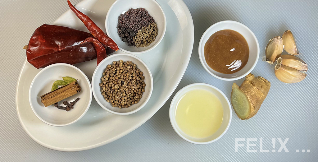 Wie jedes indische Curry beginnt die Zubereitung mit einem Masala, einer Gewürzmischung. Diese kann sehr scharf sein, mit der verwendeten Chili-Menge kann man dies jedoch etwas steuern.