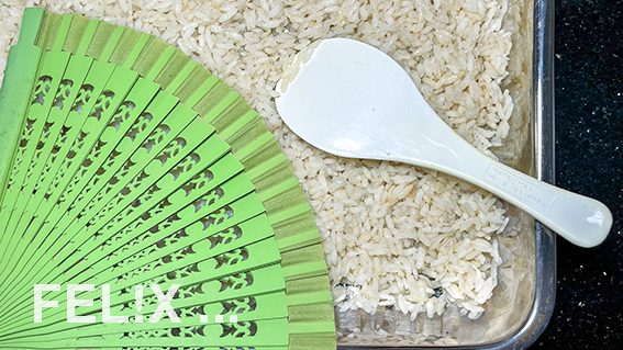 Sushi-Reis aus 200 g Jasminreis bereitstellen, Anleitung siehe hier!