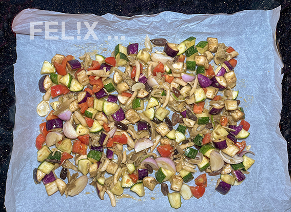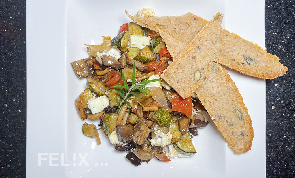 • Feta darüber verteilen, weitere 10 Minuten rösten, bis das Gemüse gar ist.