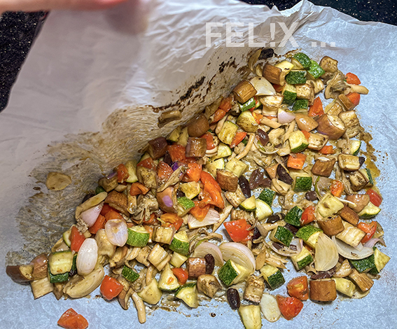• In der Ofenmitte einschieben, Gemüse 20 Minuten rösten.