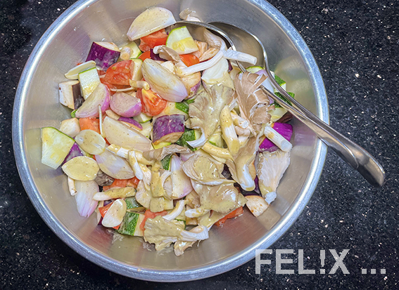 • 75–100 g Pilze nach Belieben [FEL!X: Austernseitlinge]