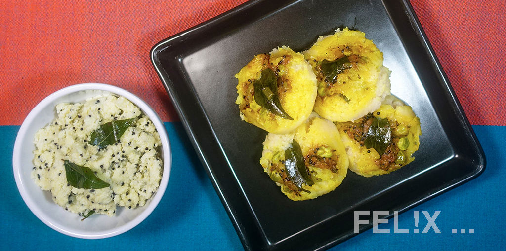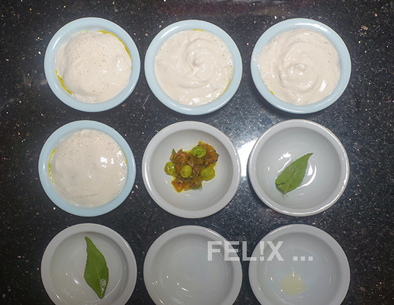 Schliesslich wird der nun sehr fluffig gewordene Teig in kleinen Schälchen zusammen mit einem würzigen Masala im Dampf gegart und mit Kokosnuss-Chutney serviert.