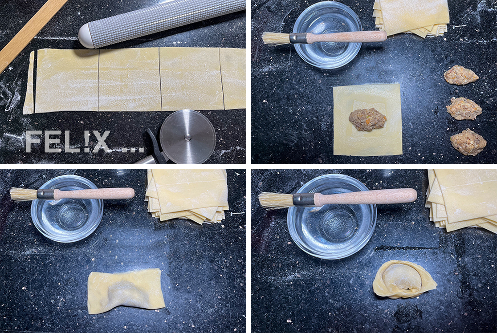 Was mir zugute kommt, denn mit Teigstücken von 8 cm Grösse formt sich die gefüllte Pasta leichter, als mit lediglich 6 oder gar nur 5 cm!