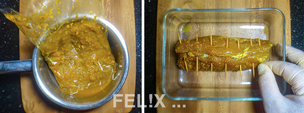 Mindestens 1 Stunde marinieren lassen (länger: im Kühlschrank).