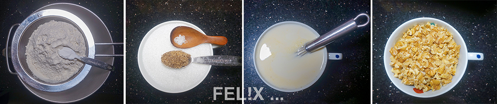 Es handelt sich um ein Tassen-Rezept, abwägen ist für einmal nicht erforderlich. Allerdings wird kein (amerikanisches) Tassen-Mass von 236 ml ver­wendet, sondern eine grössere Tasse, ein Schüssel­chen oder ein Glas von 325 ml.