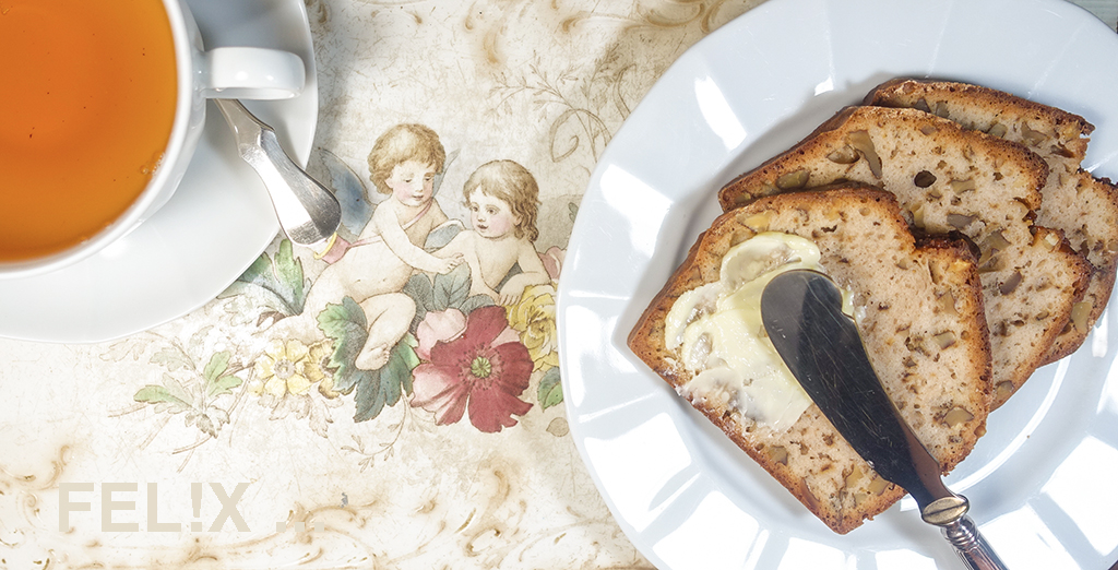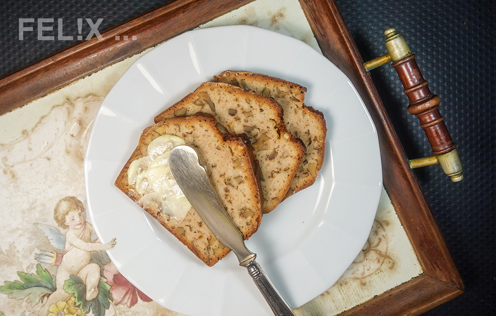 Wir haben das dünn geschnittene Nussbrot stets mit etwas Butter bestrichen: das gehörte bei uns ganz einfach dazu!