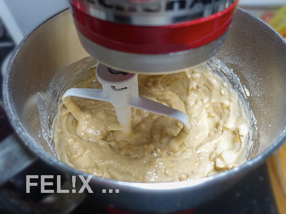 Alles zu einem Teig zusammenfügen (Flachrührer!).