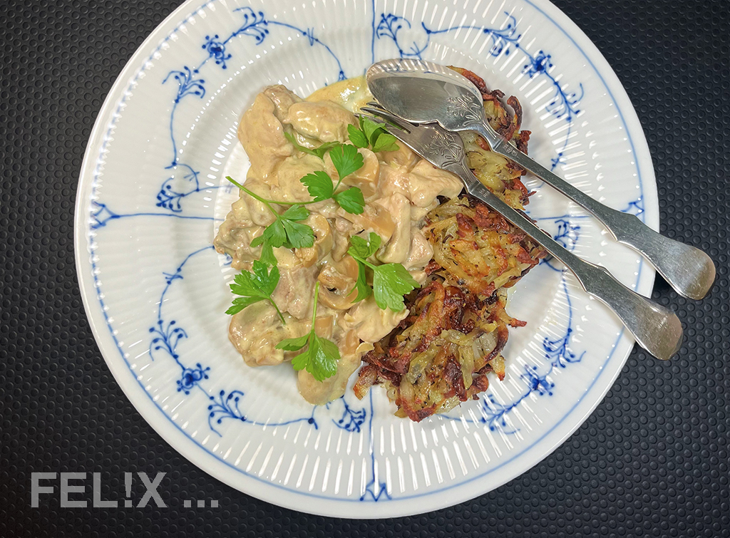 Als Beilage habe ich mich für Rösti entschieden, allerdings ganz einfach als Taler im Ofen gebacken!