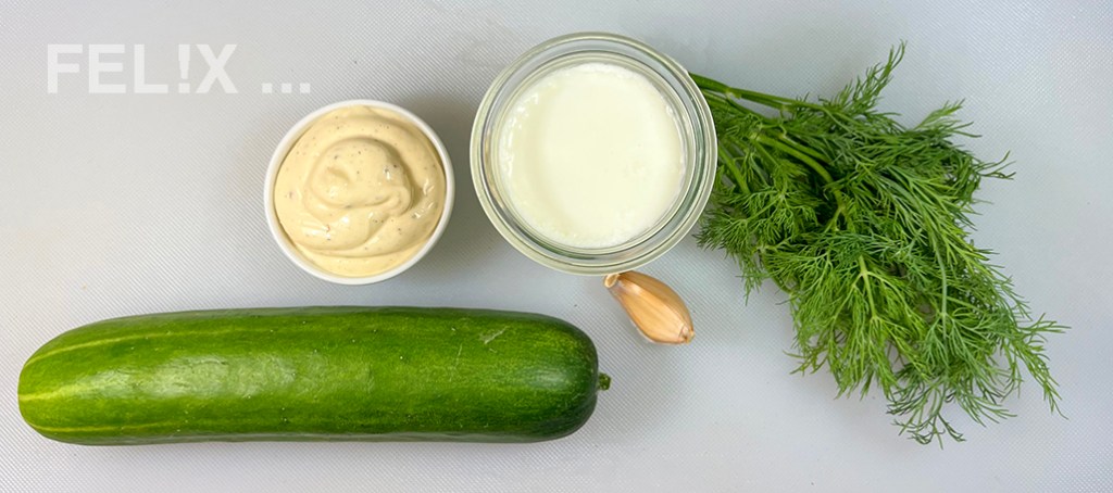Zusätzlich den Gurken-Dill-Dip beigefügt, diesen bereite ich schon seit Jahren so zu.