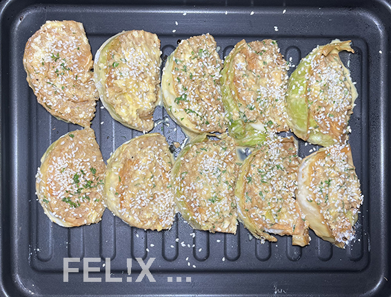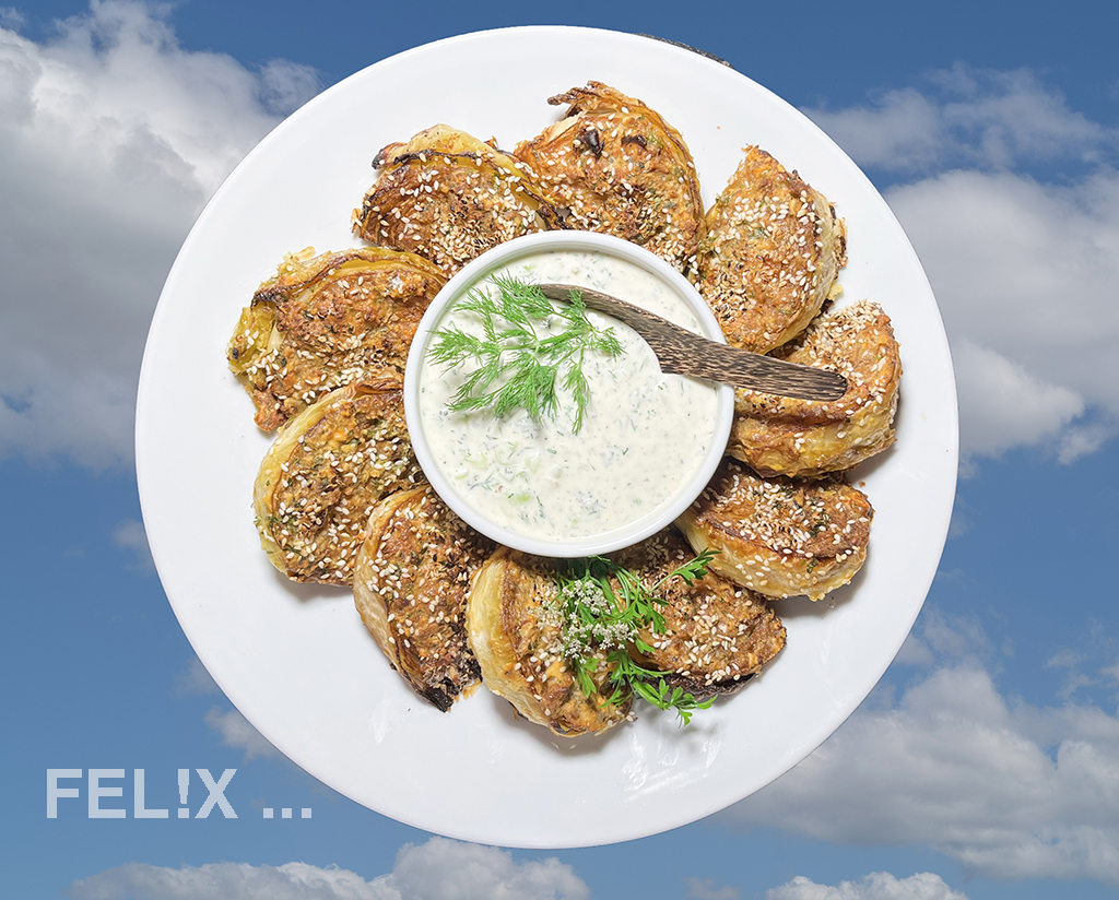 GEBACKENE KOHLSPALTEN MIT GURKEN-DILL-DIP