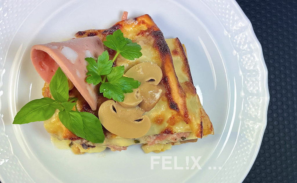 Mortadella bekomme ich hier in Thailand aufgeschnitten im C&C in Phuket. Die Tranchen sind leider nicht so dünn, wie ich sie eigentlich möchte, und darum habe ich diese besser in einer Lasagne verwendet!