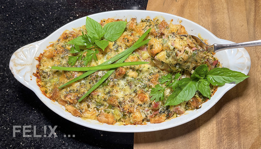 Daraus habe ich einen saftig-cremigen Brotauflauf zubereitet.