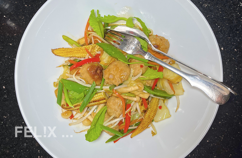 GEMÜSE UND FLEISCHBÄLLCHEN RÜHRGEBRATEN