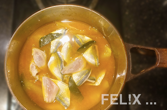 Weiter kurz köcheln lassen, bis der Fisch gar ist, dabei nicht umrühren, um die Filets nicht zu zerbrechen.