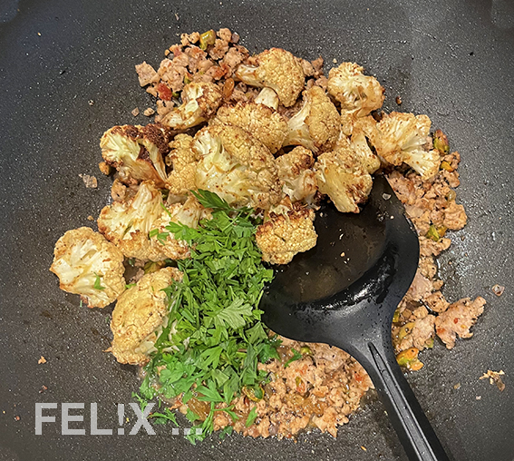 Blumenkohl dazugeben, gut mischen.
