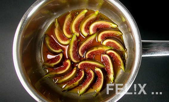• Feigenspalten vorsichtig aus der Pfanne heben, daraufsetzen