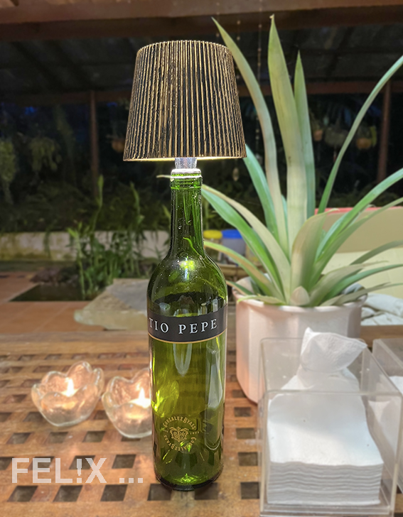 Nun habe ich jedoch eine weitere Verwendung entdeckt: die cleveren Hersteller von Leuchtmitteln aus Guzhen Town (Südchina) hatten die Idee, LED-Tischleuchten ohne Fuss herzustellen. Diese werden einfach auf schöne Flaschen gesteckt und erhalten so einen individuellen, persönlichen Touch.