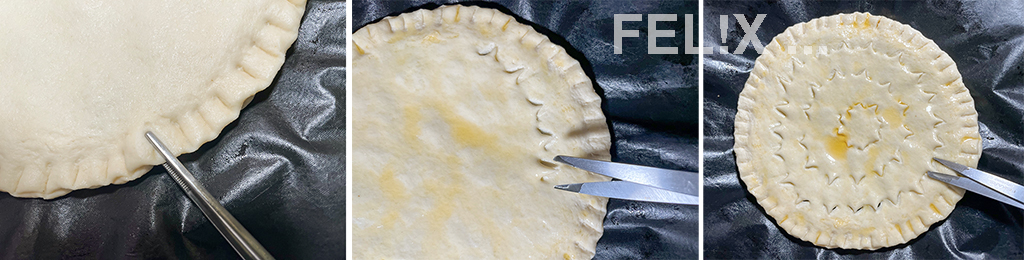 Teigoberfläche mit einer Schere einzwicken, so dass kleine Öffnungen entstehen.
