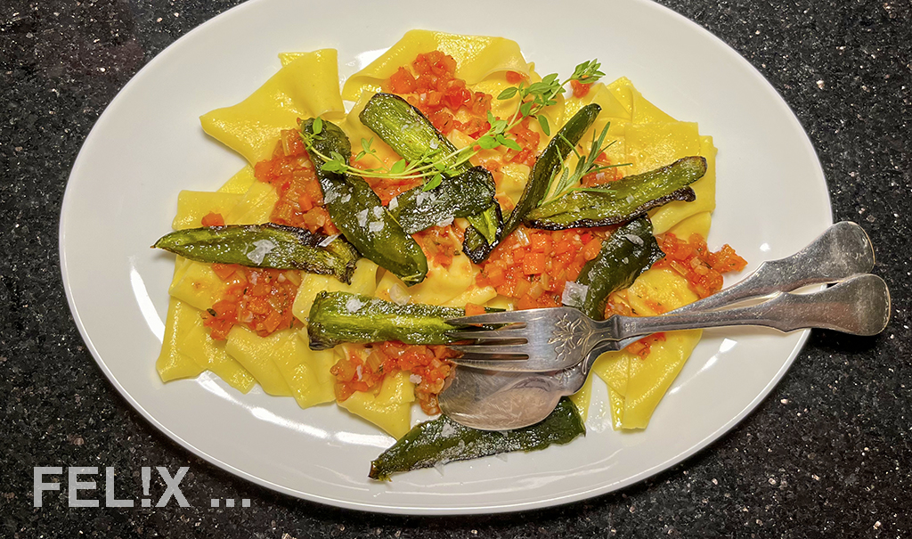 PASTA MIT GEMÜSESAUCE UND POBLANOS