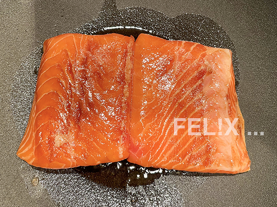 Filets wenden, weiterbraten, bis der gewünschte Garpunkt erreicht ist: innen noch glasig oder aber durchgebraten.