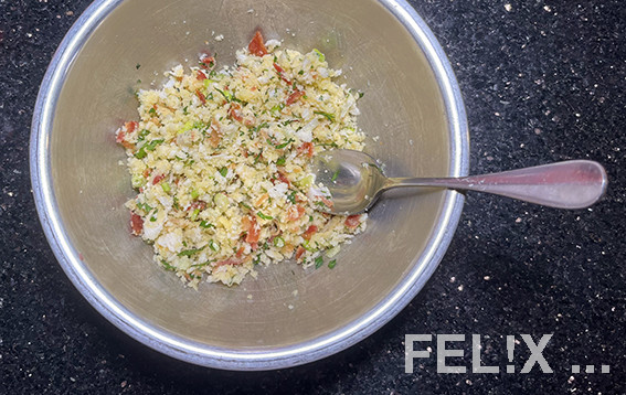 Restlichen Käse mit verbliebener Speck-Mischung und Panko gut mischen.