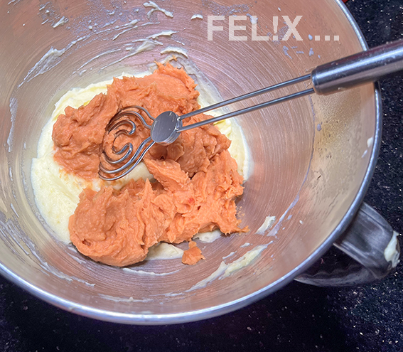Mit dem Schwingbesen (= «Drahtbesen») pürieren.
