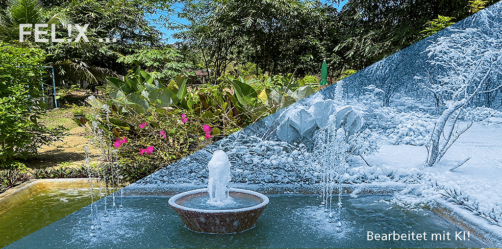 Meine Original-Bilder wurden mittels Künstlicher Intelligenz (KI) zu Schneelandschaften generiert.