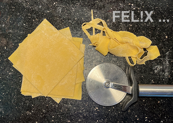 Teig mit der Pasta-Walze dünn auswalzen [FEL!X: Stufe 5 von 8].