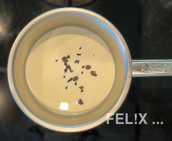 Schokolade entweder grob hacken, oder als Pastillen in der noch gut warmen Rahm-Milch schmelzen.