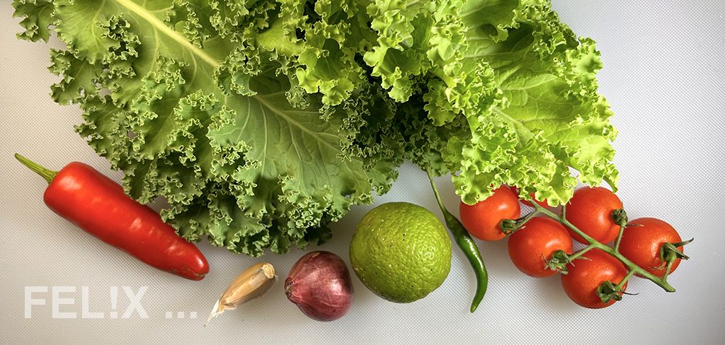 Im Moment ist jedoch Grünkohl angesagt, denn er wächst gerade prächtig in unserem tropischen Garten.