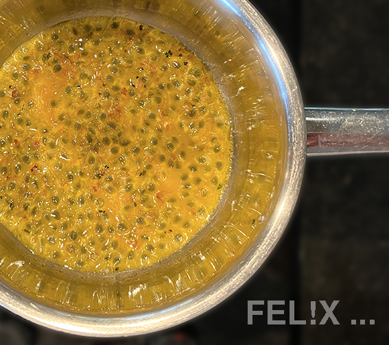 Inspiration: als ich mich im www umsah, wie andere eine Passionsfrucht-Sauce zubereiten, kamen mir nur übersüsste Rezepte auf den Bildschirm. Nichts für mich!