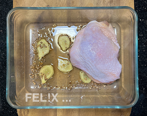 • 2 Hähnchen-Oberschenkel (Chicken Thighs), mit Knochen à 250 g