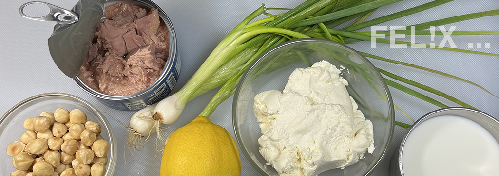 Thunfisch abtropfen, Lake für die Sauce beiseitestellen, Fisch samt Ricotta ebenfalls in den Cutter geben.