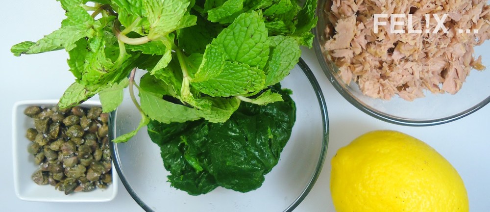 Hier gibt es jetzt ein Pesto aus Pfefferminze mit Thunfisch, Kapern und Zitrone!